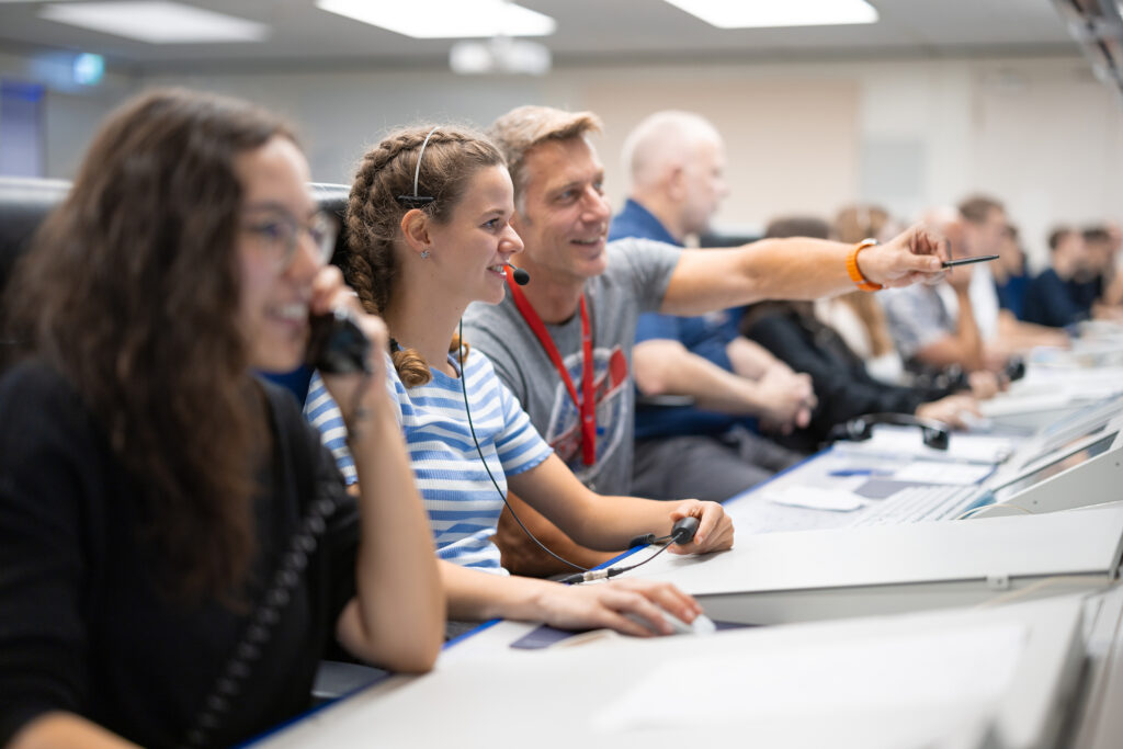 12–24 Monate Training on the Job im Live-Traffic im Center oder Tower am Einsatzort – aktives Lotsen im Austausch mit den Pilotinnen und Piloten, Feedback und Coaching, Erwerb der Lizenzen.