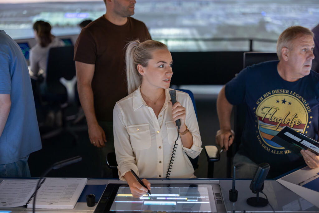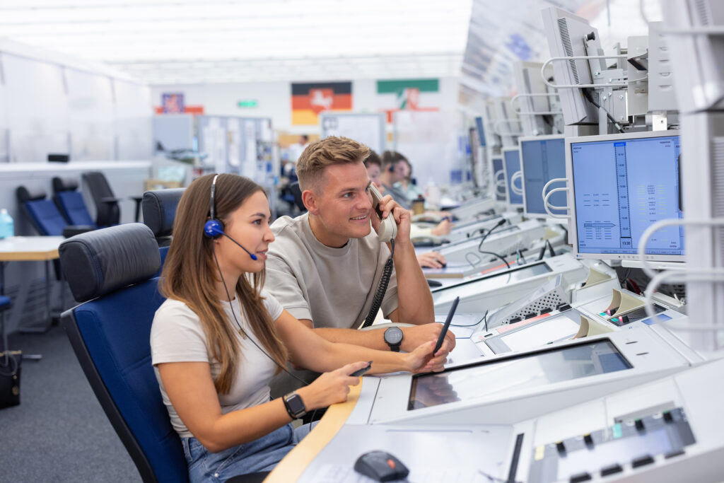 12–24 Monate Training on the Job im Live-Traffic im Center oder Tower am Einsatzort – aktives Lotsen im Austausch mit den Pilotinnen und Piloten, Feedback und Coaching, Erwerb der Lizenzen.